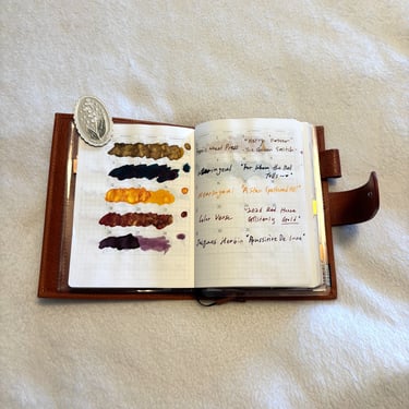 However, an intentional analog life is really about finding new purpose for what you already have. I decided to stop waiting for a 'perfect' start and repurposed that A6 into a creative record book. This was the same notebook I originally intended to use as a reading journal before the dated pages made me hesitate. It is now a dedicated home for my ink swatches, cursive practice, my favorite shop logs and sticker memories, and washi tape samples.